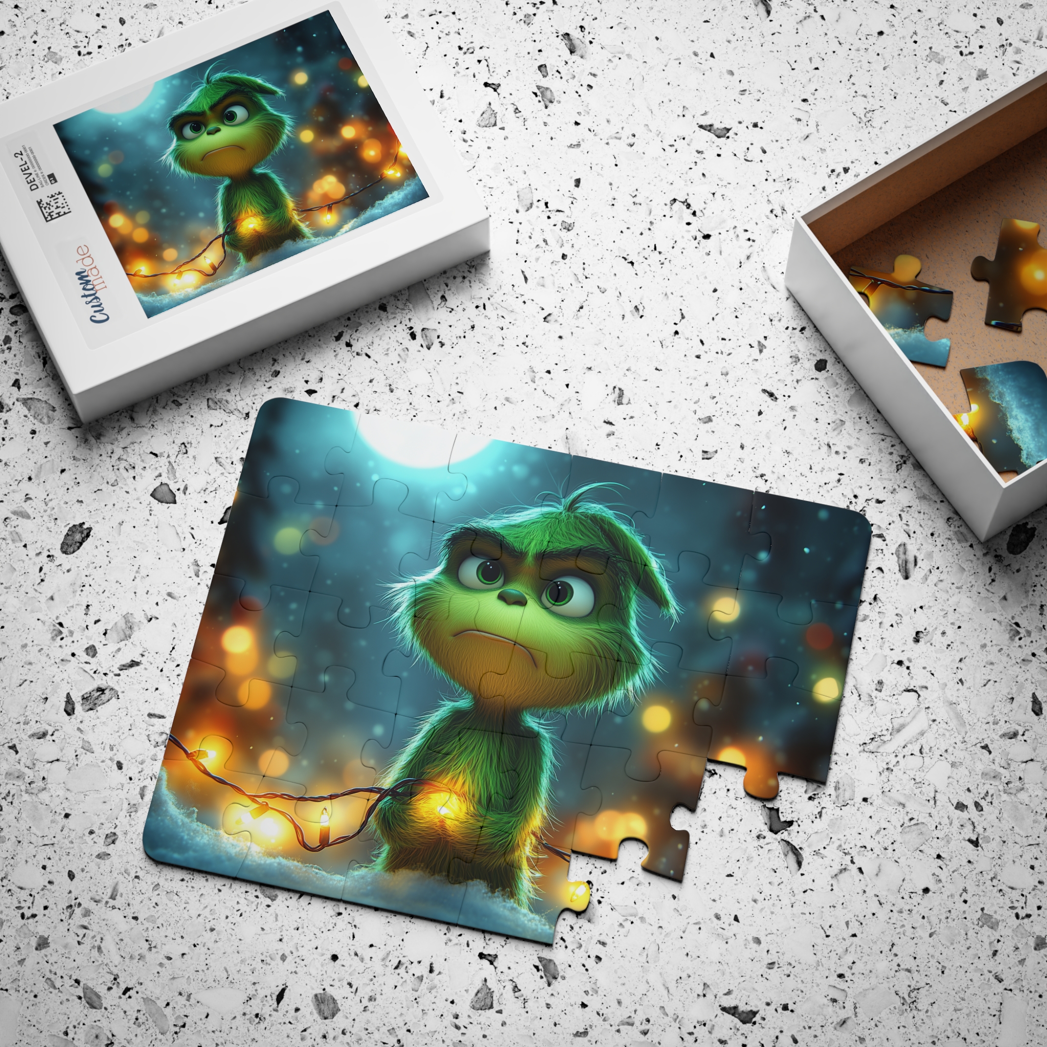 Turn your AI art or custom design into a puzzle kids will actually want to finish. Whether it’s a frog astronaut, a sparkly unicorn, or a grumpy green gremlin wrapped in lights (looking at you, little guy), this 30-piece puzzle is made for little hands and big imaginations.